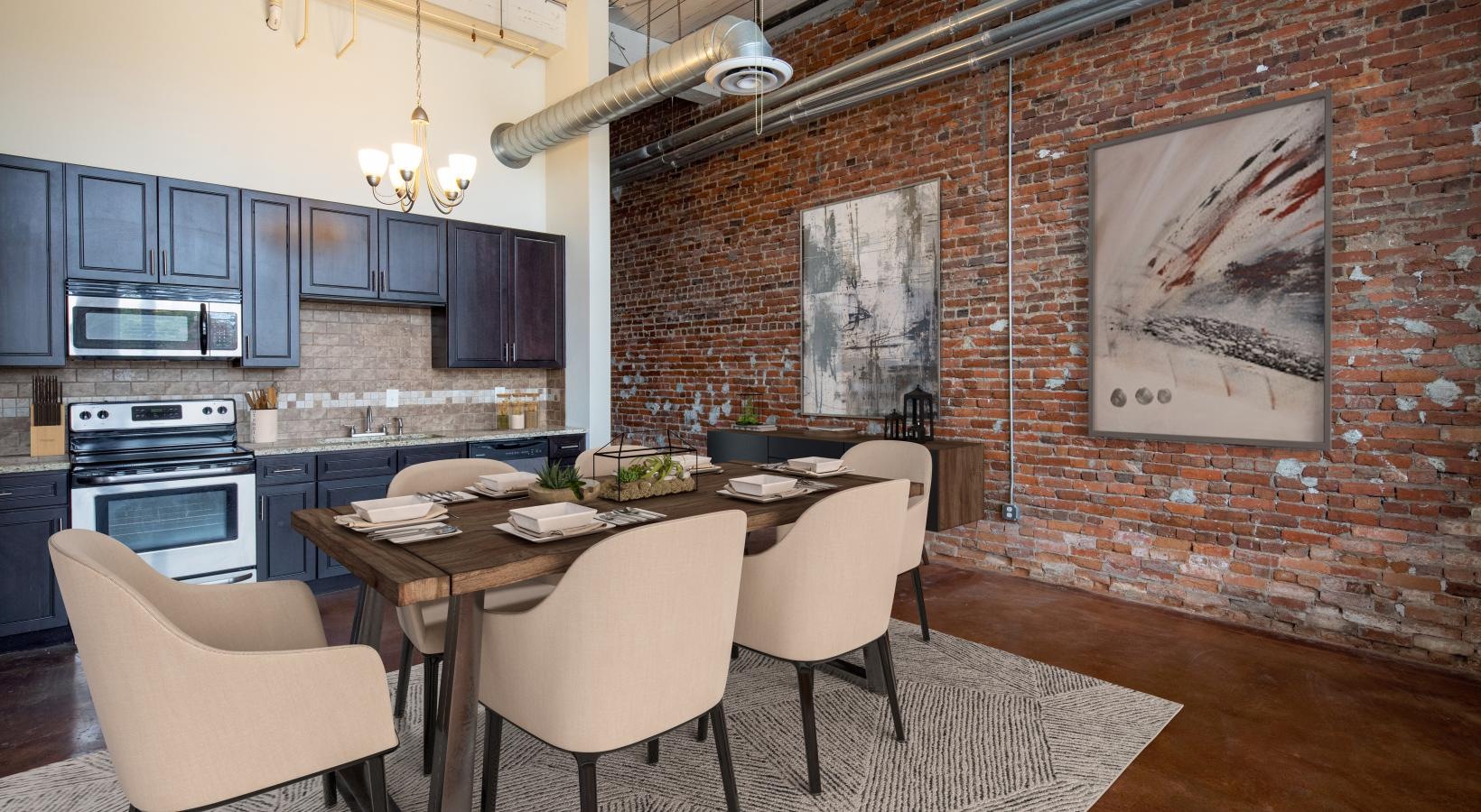 retail alley environment with seating exterior of building with green turf and some seating bedroom with spacious areas kitchen area with seating